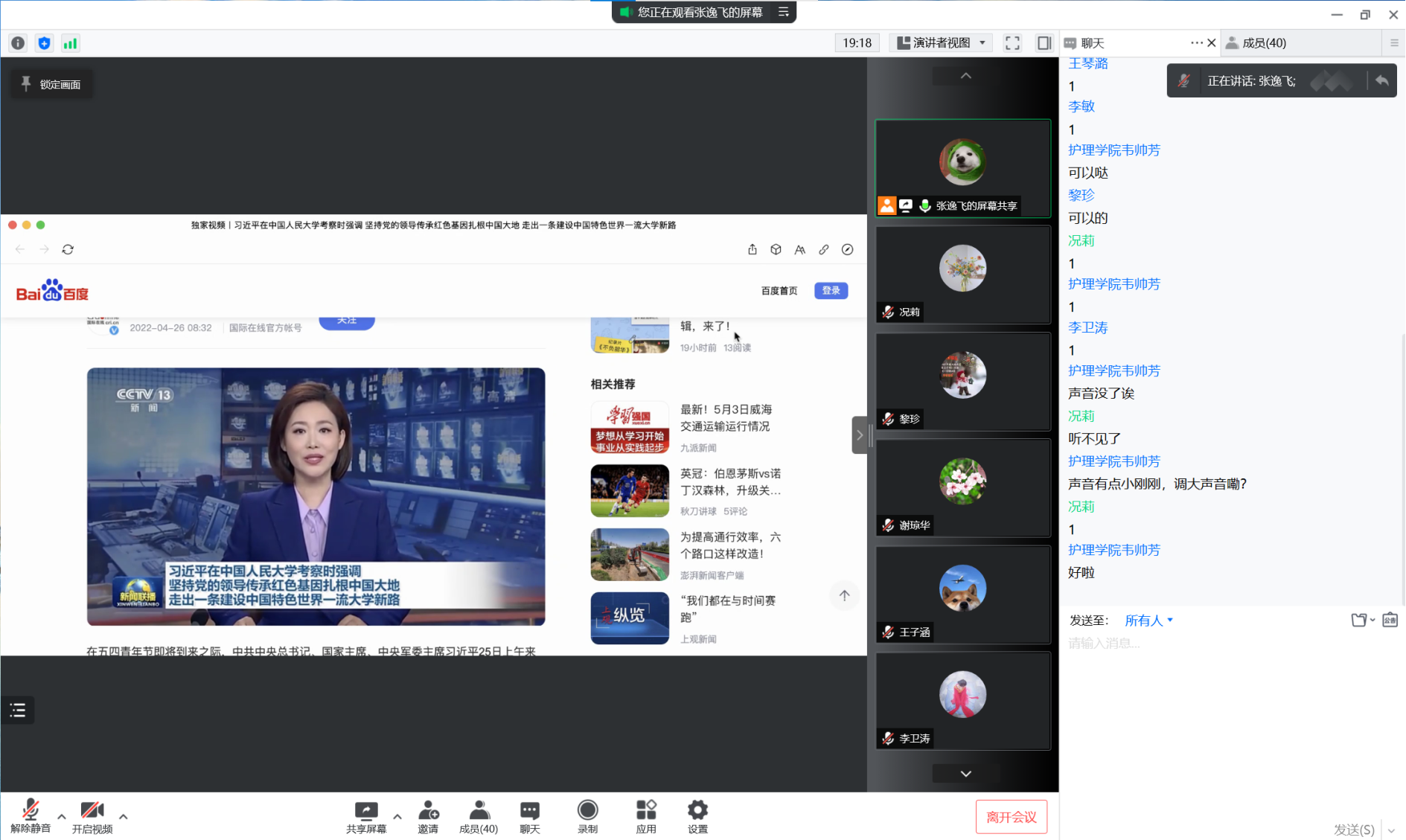 2022年4月25日,习近平总书记来到中国人民大学考察调研并发表重要讲话。vwin德赢ac米兰官方网团委4月26日组织团学干部通过网络、新媒体等渠道收听收看新闻报道,认真学习习近平总书记在考察时发表的重要讲话精神,交流讨论学习心得。大家一致认为新时代的青年要有理想有担当,牢记习近平总书记嘱托,不负青春韶华。在五一假期,学院各团支部通过线上线下相结合的方式带领全体团员青年深入学习重要讲话精神。